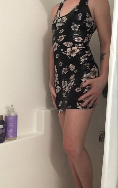 Csiszolás a zuhany alatt egy gyönyörű ruhában